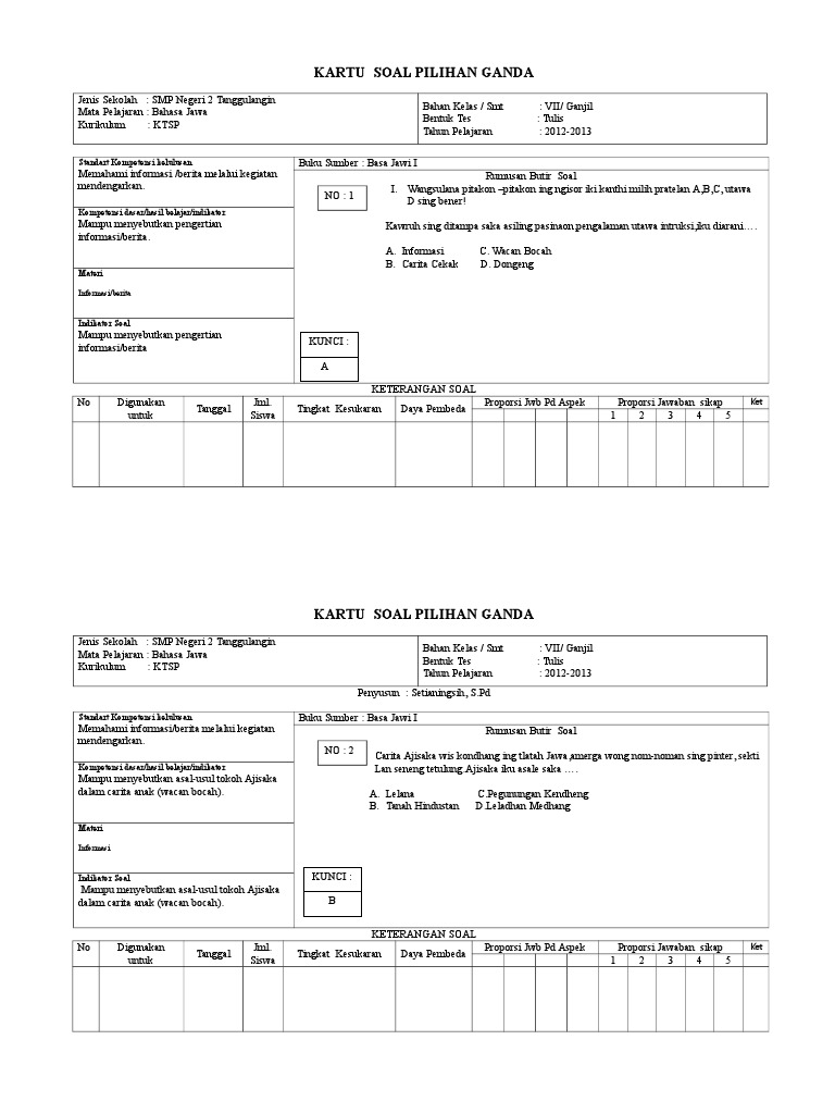 Feb 15, 2021 · pos tentang soal bahasa jawa pilihan ganda yang ditulis oleh susindarins. Contoh soal teks cerita inspiratif ilmusosial id Oleh dosen pendidikan 3 diposting pada 25102020. Contoh soal pilihan ganda bahasa sunda tentang dongeng contoh file guru. Bacalah dongeng berikut ini untuk menjawab soal 1 s.d.